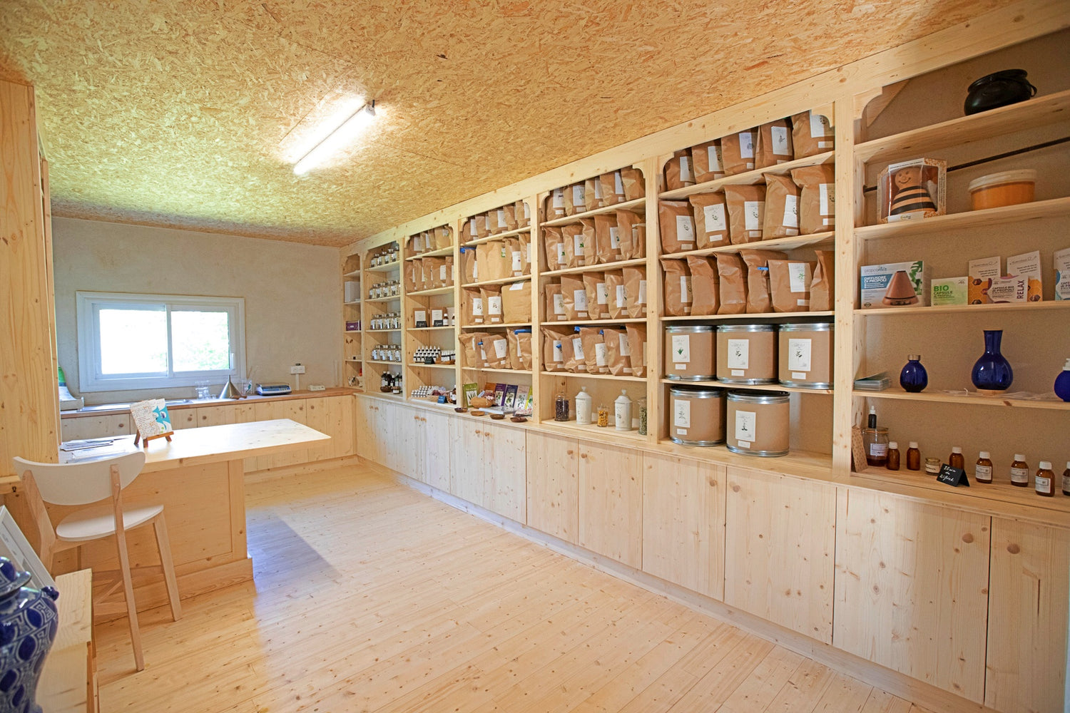 Ce local est d’abord l’atelier où je transforme, conditionne et conserve mes plantes dans tous leurs états: plantes sèches pour infusion ou décoction, hydrolats et huiles essentielles, macérats, et quelques autres surprises.