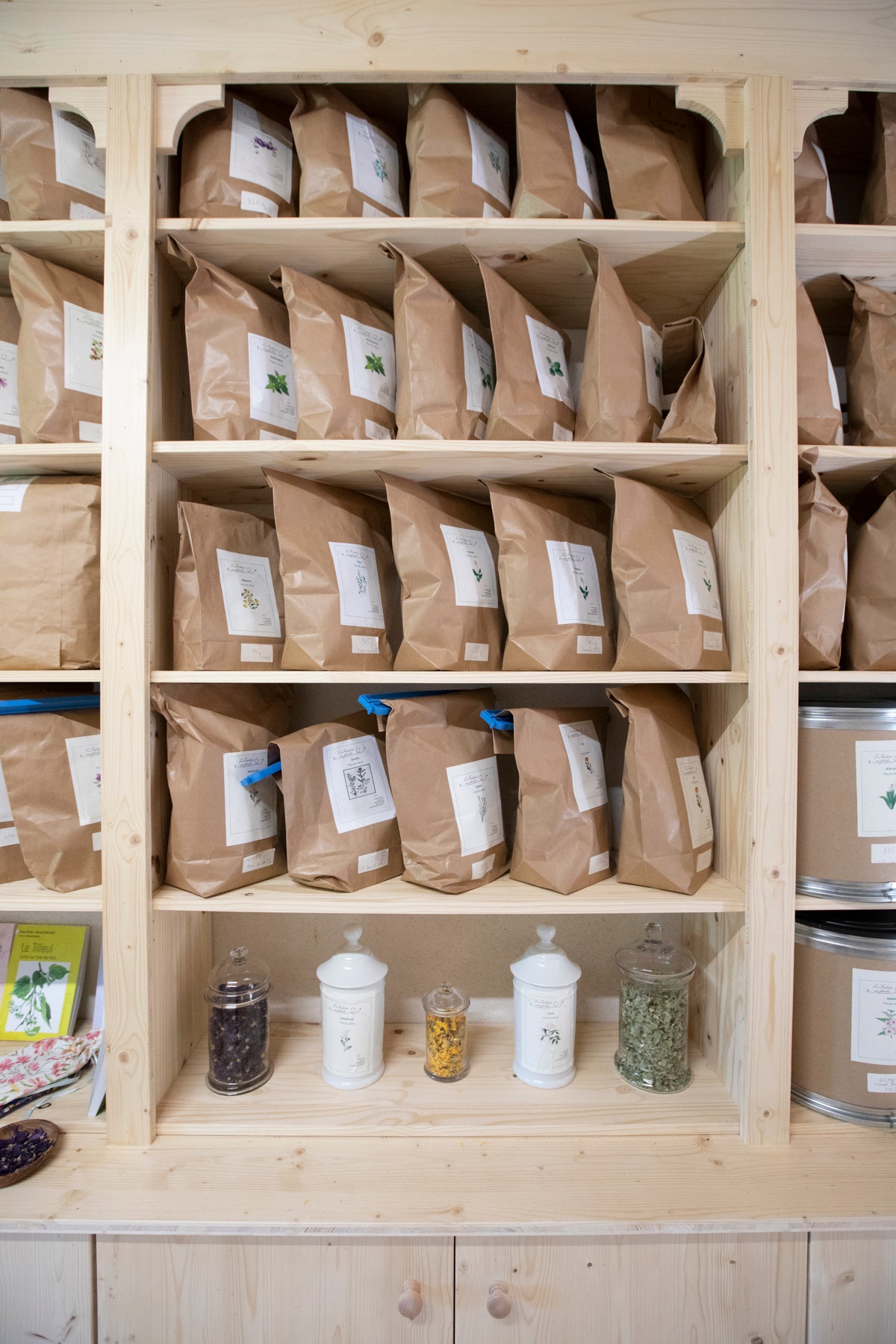 Une fois sèches, les plantes sont mondées à la main, mélangées – ou pas – puis conditionnées en sachets de papier kraft.