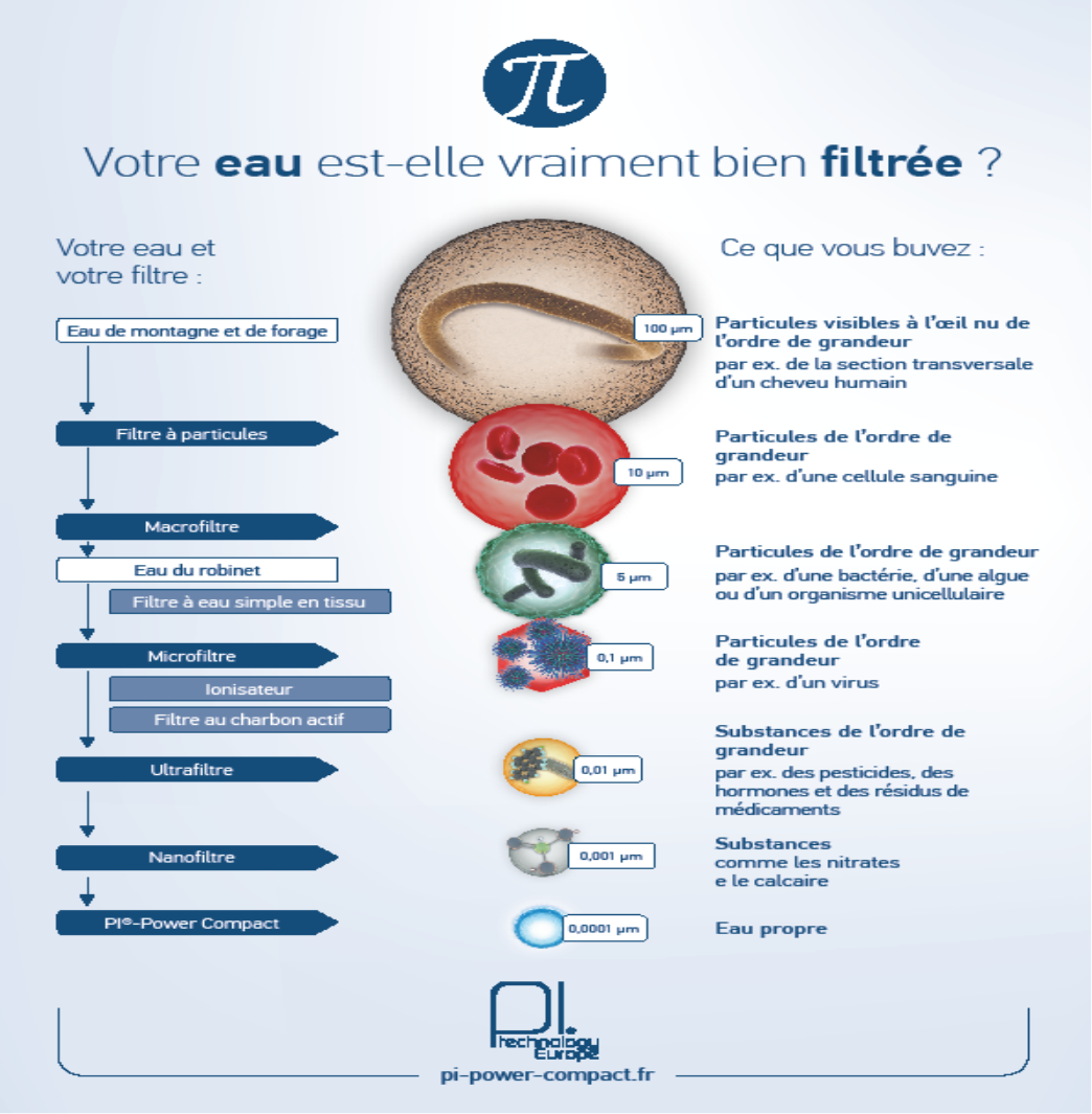 La filtration de l’eau et son degré de propreté (le moins de polluants possibles) est toujours une question de taille de molécules. C’est mécanique !